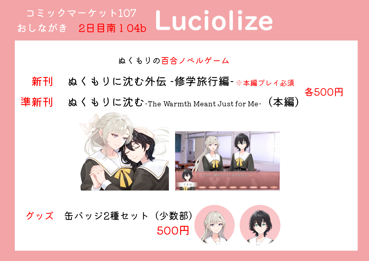 コミックマーケット107 おしながき公開しました。